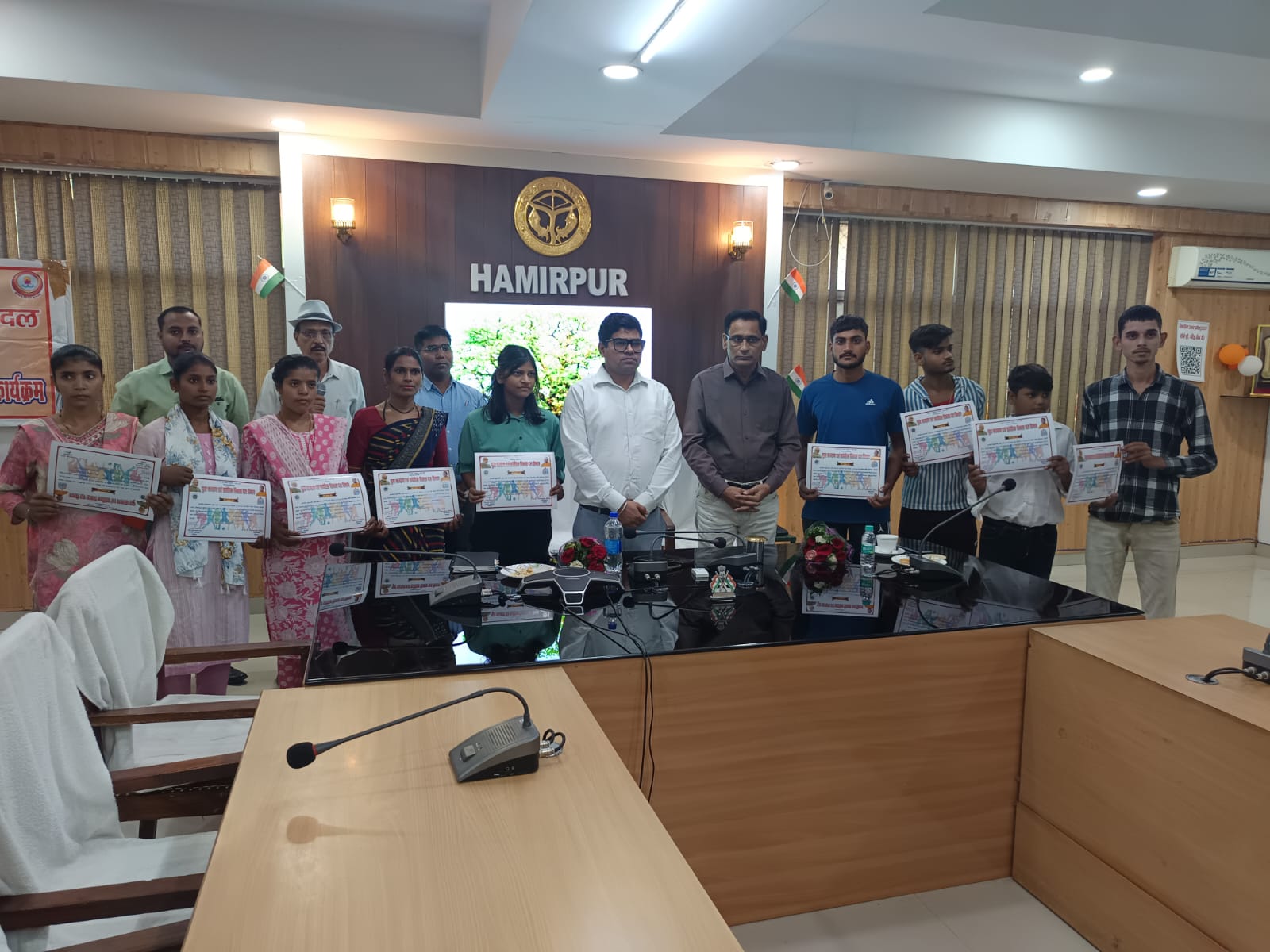 हमीरपुर। कलेक्ट्रेट स्थित डॉ एपीजे अब्दुल कलाम सभागार में जिलाधिकारी घनश्याम मीना द्वारा युवा कल्याण एवं प्रादेशिक विकास दल के तहत ग्राम पंचायतों में गठित 17 युवक/महिला मंगल दलों को खेल प्रोत्साहन सामग्री का वितरण किया गया। इस अवसर पर इंदिरा गॉधी प्रतिष्ठान लखनऊ में आयोजित कार्यक्रम का सजीव प्रसारण भी देखा गया।