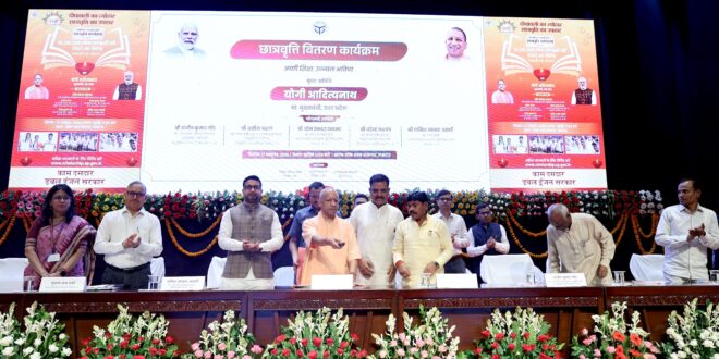 मुख्यमंत्री आज यहां दशमोत्तर एवं पूर्वदशम् छात्रवृत्ति कार्यक्रम के अन्तर्गत 10,28,205 छात्र-छात्राओं के खातों में 297.95 करोड़ रुपये की छात्रवृत्ति डी0बी0टी0 के माध्यम से हस्तांतरित करने के पश्चात आयोजित कार्यक्रम में अपने विचार व्यक्त कर रहे थे। इस अवसर पर उन्होंने छात्र-छात्राओं को छात्रवृत्ति स्वीकृति प्रमाण-पत्र प्रदान किये। कार्यक्रम के दौरान मुख्यमंत्री जी ने छात्र-छात्राओं से संवाद किया।